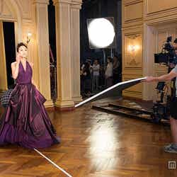 普段フランスで生活する後藤はCM撮影のため久々に来日。フライトの疲れを見せることもなく、各カットを順調にこなした。撮影用に生地から仕立てたドレスを身にまとい、表情や指先の動きなど細かい演出にも瞬時に対応。ドレスがストンと落ちるクライマックスシーンも臆することなく一発OKとなった。