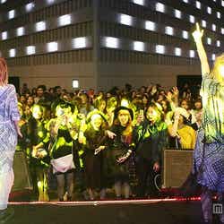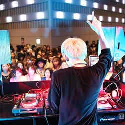 アーティストライブやDJパフォーマンスといったコンテンツで構成された同イベント。双子モデルユニットのAMIAYAがキュートな“双子”コーデで登場すると、会場からは「カワイイ~」といった歓声が。会場のボルテージが高まる中、TOMOYUKI TANAKA(FPM)が登場する頃には、会場が満員となった。彼はAKB48の「ヘビーローテーション」のリミックスをパフォーマンス。中には曲の振りで踊りながら盛り上がる人も見られ、耳馴染みのある楽曲で会場を沸かせた。土屋アンナの登場でボルテージMAX