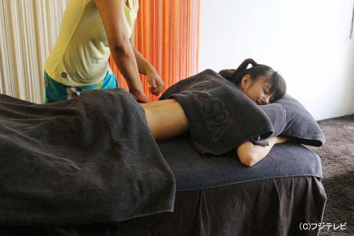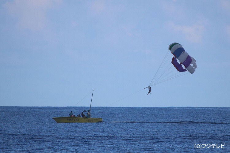 また、先住民族の生活の一部を体験できるチャモロ村落跡では、火おこしに挑戦するもなかなか火がつかず「アイドルだから出来な~い」と可愛らしいリアクションの渡辺。一方、“ガテン系のことは私に”と言わんばかりに気合いを入れた木下もなくなく断念。地元の人の助けを借りヤシの葉でできた帽子などをプレゼントされ、先住民族の気分を味わった。
