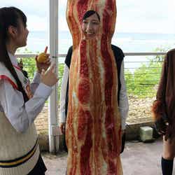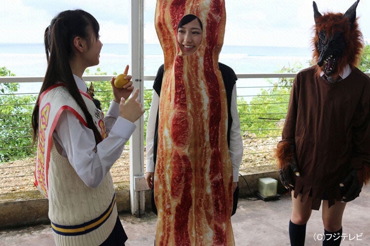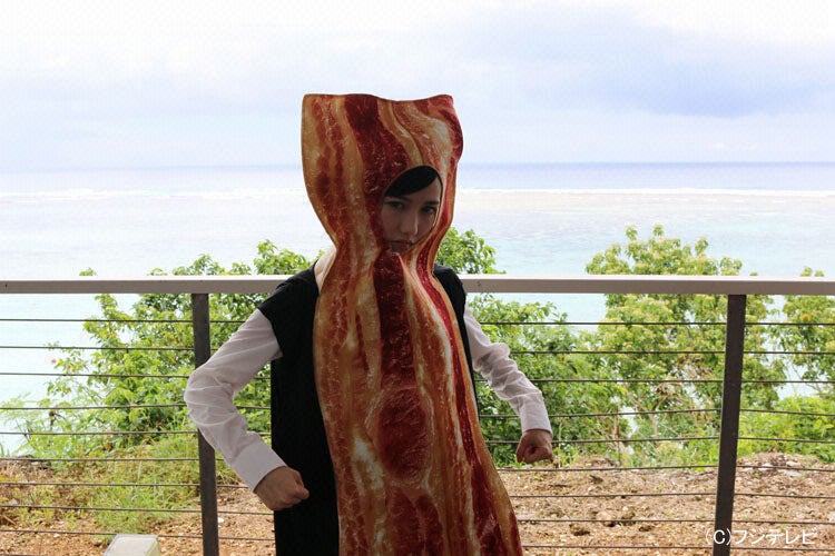 このほかスカイダイビング、水中バイク、パラセーリング、エアーヘッド、相撲スプラッシュなどを体験。エンディングは、ハロウィーンにちなんで被り物姿を披露。肉好き、肉食の渡辺には、ベーコンの被り物が用意されドヤ顔で決めポーズ。そんな渡辺に木下は、「今回のロケで、まゆゆさんの知られざる素顔をたくさんみた。全然正統派ではない!」とピシャリ。
