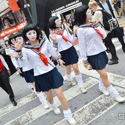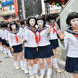 31日、東京・渋谷でお笑いコンビ・日本エレキテル連合の持ちネタの人気キャラ「未亡人朱美ちゃん」の仮装パレードが行われた。