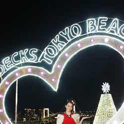 田中理恵、お台場イルミにうっとり サンタ風赤ドレスで登場