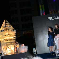 イベントでは氷でできた巨大クリスタルの点灯式も開催。3人が点灯台に手をかざすと、青や赤などにクリスタルのイルミネーションが瞬き、秋葉原を幻想的な雰囲気に変えた。(modelpress編集部)