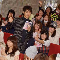 24日、都内にて映画「L・DK」Blu-ray&DVD発売記念トーク&ハイタッチ会が行われた。今年の流行語大賞にもノミネートされた“壁ドン”を同作で披露している山崎は「みなさんに知ってもらえて、応援していただけるきっかけになった作品。“壁ドン”がこんなにもなるなんて、撮っていた時は思いもよらなかった」と反響の大きさに驚き。トークショー後には、抽選で選ばれた1400人(2公演・各700人)とハイタッチをし、鳴り止まぬ黄色い歓声を浴びた。