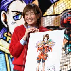 2日、スマホゲームの新CM披露会に出席した本田は、レッドのセーターにグレーのパンツというシックなスタイルで登壇。イベントでは、ゲームのキャラクターデザインを担当した幹大樹氏からゲームキャラクター姿の本田を描いたイラストが贈られるというサプライズが。本田は「すごく嬉しいです!」と顔をほころばせて喜んだ。