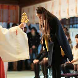 9日、“恋愛成就”で有名な東京大神宮にて、映画『フィフティ・シェイズ・オブ・グレイ』(2015年2月13日日米同時公開)の恋愛女子会トークイベントを開催。応援ミューズとして登場した道端は、胸元露わなワンピース姿で、一般女子大生の恋の悩みに赤裸々に回答した。