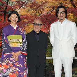 榮倉は16日、都内で行われた映画「娚の一生」の完成報告会見に、俳優の豊川悦司、廣木隆一監督とともに出席。結婚報告会見さながらの雰囲気の中、劇中のデートシーンをイメージした艶やかな和装で登場した榮倉は、予告編で話題となった“足キス”のシーンを振り返ると「単純に恥ずかしくて、まだそのシーンは見られていません」と顔を赤らめた。