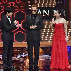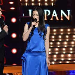 また番組の進行と共に華麗な衣装替えも披露。ゴールド、グレーとテイストの異なるドレスに合わせて、ヘアアレンジもチェンジ。ラストはセクシーな胸元をのぞかせた真っ赤なロングドレス姿で“4変化”を締めくくった。