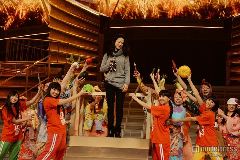 メンバーの有安杏果がインフルエンザを発症したため、4人での出演となったももクロ。まず4人が立ったステージは演歌歌手の坂本冬美。大根を片手に農家風の装いで登場。コンセプトについて百田は「来年も日本中が豊かな笑顔になるため冬美ちゃんを盛り上げたい!」と元気良くアピール。バックダンサーとして、坂本の後ろでももクロらしい笑顔をはじけさせ、全力のダンスを披露。有安欠場のため一部内容変更もあったものの、息ぴったりのコラボを見せつけた。