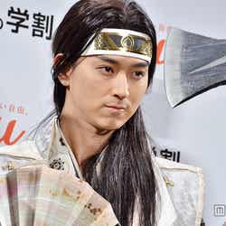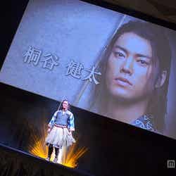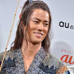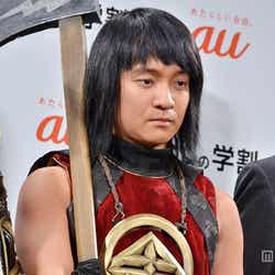 19日、都内で行われた「au発表会 2015 Spring」にCMの衣装で登場した3人は、撮影を振り返り「かなり自由演技が盛り込まれています」(松田)、「後半はほぼアドリブ。その場で生まれたものを3人でやっていきました」(桐谷)とエピソードを紹介。最もアドリブを攻めたのは「間違いなく浦ちゃん(=桐谷)」(松田)といい、桐谷は「絵コンテを見て、パッと出てきたしゃべり方。編集で切られている所もぜひのっけてほしいくらい、楽しくてしょうがない」と笑顔。「ほんまにこの3人(の英雄)が仲良かったら、こんな感じちゃうかな?って。愛すべきアホといいますか」と魅力を語ると、松田が「2人に(演技を)ひっぱられがちですが、僕が冷静につっこまないといけない」とトリオとしてのコンビネーションをのぞかせた。凝った衣装も見どころだが、金太郎役の濱田がひときわ露出度が高く「海での撮影とか寒すぎて、なんで真冬に俺だけノースリーブなんだ?って素に戻る瞬間がありました」と恨み節。濱田の口数の少なさに2人がつっこむなど、CMそのままの和やかな雰囲気が漂う3人のトークは、濱田の「3人で仲良くがんばってま~す」というユルい一言で締めくくられた。