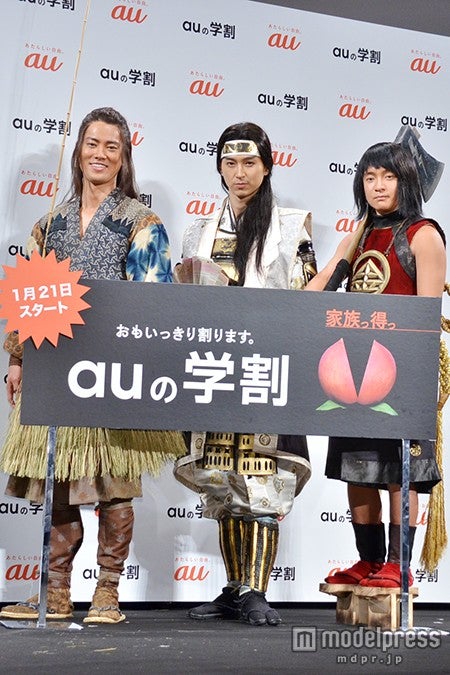 KDDI株式会社の田中孝司代表取締役社長は、ステージ上で3人と握手を交わし「浦ちゃんが関西出身のいい味を出してる」などとCMの出来栄えを絶賛。またストーリーにちなみ「桃太郎は彼女(=かぐや姫)がいるみたいで…」と切り出すと、松田が「今度(彼女を)ご紹介させてください(笑)」と笑わせた。CMは「あたらしい英雄」篇、「三匹セット」篇に続き、20日から「桃太郎の出生」篇が放映開始。個性豊かな“三太郎”の今後のストーリーに注目だ。(modelpress編集部)