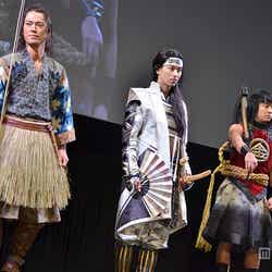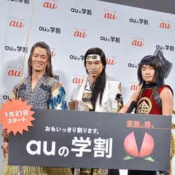 「CM好感度ランキング」で1位を獲得した「au」の新CMに出演する俳優の松田翔太、桐谷健太、濱田岳が、話題の“三太郎”姿で勢揃いした。