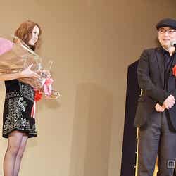 授賞式には中田喜子、吉田鋼太郎、竹中直人や各作品の脚本家らが駆けつけ、受賞者に花束を贈呈。吹石は「プロデューサー賞」を受賞した映画『永遠の0』の上田太地氏、筒井竜平氏、守屋圭一郎氏を祝福するために駆けつけた。