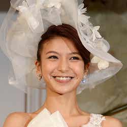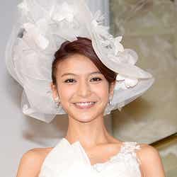 結婚は、レギュラーモデルとして出演する雑誌「ViVi」3月号で発表。この日の会見では、デザイナー桂由美氏がプロデュースしたフリルのミニスカート型ウェディングドレスで登場し「今年の3月22日に入籍することが決まりました。地元浜松の方と結婚することが決まりました」と改めて報告し、「交際10年という節目の年で結婚を発表できるということがすごく幸せに思っております」とハッピーオーラ全開で語った。