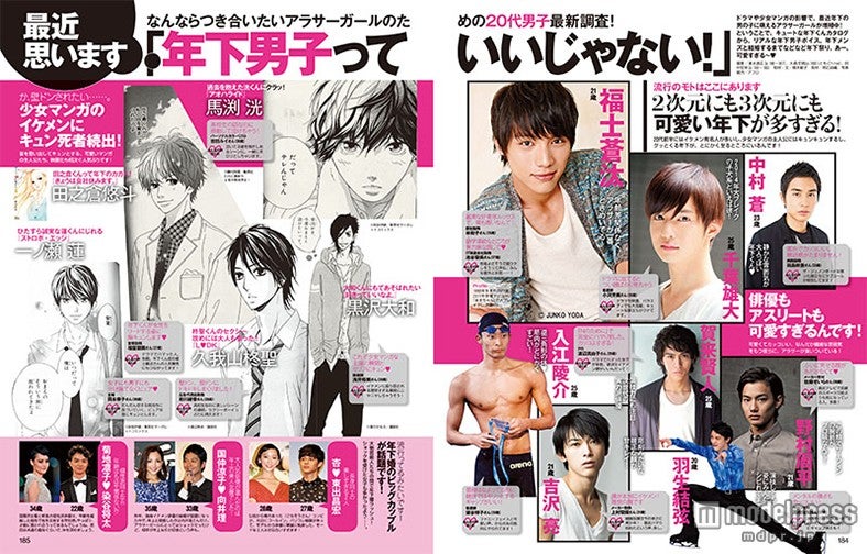 12日発売の雑誌「andGIRL」3月号は、「年下男子と付き合いたい」というアラサー女子へ向けた「20代男子の最新調査」を特集。「リアル年下世代に聞いた『こんな年上女性が好き』データファイル」では、21歳~26歳の男性を集めてアンケート大会を実施。「恋愛対象として、年上ってあり?」という問いに対しては、100%の男性から「あり」という回答が得られ「積極的につき合いたいっていうコも、なんなら多数派」「背伸びするのも疲れるし、年上に手のひらで転がされたい」「仕事がデキて尊敬できるから20歳になってからは年上ひと筋です!」などの声が上がった。