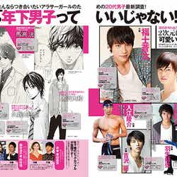 また“いまいちばん気になる年下BOY”福士を迎え「アラサーガールはみーんな、福士蒼汰くんに恋してる」と題したインタビュー特集を展開。最新主演映画「ストロボ・エッジ」では年上女性と付き合って「自分が支えてあげたい」と努力していた福士だが、もしリアルに年上と付き合うとしたら?との問いには「年齢はまったく気にしないので、相手が年上だからといって、リードしてほしいとは思わないです。甘えたい部分は甘えるし、男として引っぱりたいところは引っぱります」とキッパリ。「姉2人にもまれて育ったので年上の女性に対して抵抗もないですし、背伸びせず、対等につきあっていたいです」と恋愛観を明かしている。