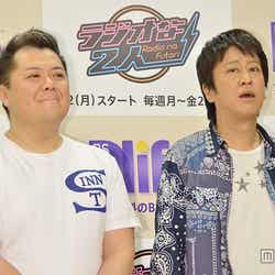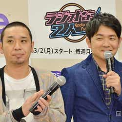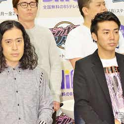 東京都内スタジオにて、BSテレビ局Dlifeの新バラエティ「ラジオな2人」(3月2日午後11時スタート)の製作発表記者会見が行われ、千鳥(大悟・ノブ)、オリエンタルラジオ(中田敦彦・藤森)、ピース(綾部祐二・又吉直樹)らが出席した。