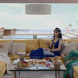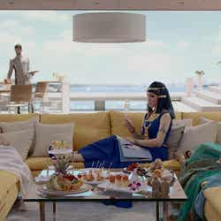 世界三大美女らしく、きらびやかな衣装を纏い、美しい海に面した高級リゾートホテルで優雅にくつろぐ3人が、女子会を開催しながら、この春おさえておきたい最新ファッションアイテムについて談笑しているという内容になっている。