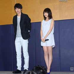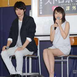映画「ストロボ・エッジ」(3月14日公開)でW主演を務める福士と女優の有村架純は10日、都内の女子高等学校にて恋愛課外授業イベントを開催。特別講師として、サプライズで登場すると、女子生徒たちから大きな歓声があがった。