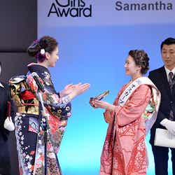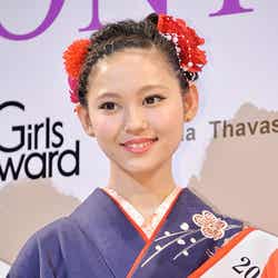 また、真っ赤な着物を選んだことについては、2020年の東京オリンピック開催決定後、日本文化などが改めて注目されているため「古典的なデザインを取り入れて選んでもらいました」と紹介。「きものクイーン」には受賞特典として3泊5日のハワイ・ペア旅行が贈られたが、「お母さんは、『ハワイに行きたい』と昨日電話で言っていました。連れて行ってあげられることがよかったなと思います」と嬉しそうに笑みを浮かべた。