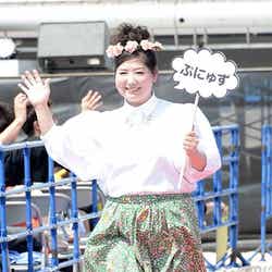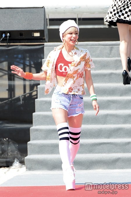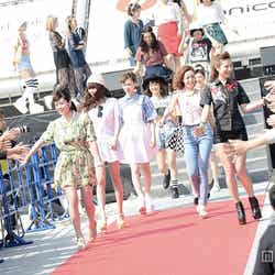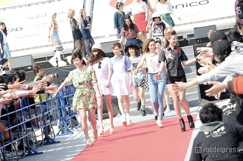 トップバッターは沖縄が故郷の玉城が務め、団扇での応援に笑顔で応えた。さらに筧、八木、エリーローズら人気モデルの他、NMB48から山田菜々、白間美瑠、上西恵、加藤夕夏も登場し、女性客のみならず男性客の視線も釘付けに。会場から大歓声を浴びた。