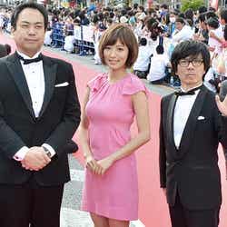 また、映画「田沼旅館の奇跡」(2015年公開予定)に出演する夏菜はピンクのワンピースで華やかに登場。美脚を披露しながら颯爽とウォーキングする夏菜に、観客も目が釘付けに。気さくに手を振るなど、笑顔で対応していた。