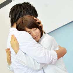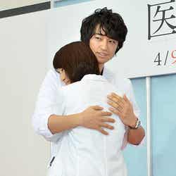 斎藤がフジテレビ系ドラマ初主演をつとめる『医師たちの恋愛事情』(4月9日スタート、毎週木曜よる10時~/初回・第2話は15分拡大)の記者会見が30日、都内で行われた。会見の終盤、同局の軽部真一アナウンサーからのリクエストでポスターのハグを再現することになり、斎藤は「石田さんがいいのなら…」と恥じらいながらも、相手役の石田を包み込むように抱擁。カメラマンからフラッシュを浴びると「(撮影しやすいように)回りましょうか?」とハグをしたまま一回転するサービス精神も見せ、報道陣を沸かせた。