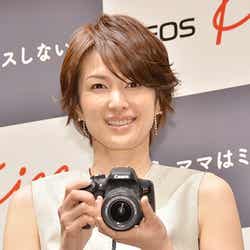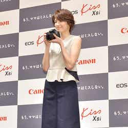 14日、都内にて行われたキヤノンカメラの新CM発表会に出席。2013年7月に第1子を出産し、1歳8ヶ月の娘を持つ母でもある吉瀬。会見では自ら撮影したという愛娘の写真を披露した。