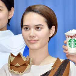 14日、都内にて行われたスターバックスコーヒーの新商品発売会で開催されたファッションショーに参加。新作フラペチーノをイメージして作られたというカラフルなドレスに身をつつみ、公園風の爽やかなステージをウォーキング。流れる生演奏のBGMに合わせ、リズムを取りながらキュートな笑顔を振りまき観客を魅了した。