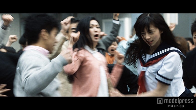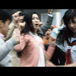 さらに街中を疾走するシーンでは、実際の道路を封鎖。中条は「約500人のエキストラのみなさんと呼吸を合わせて全力疾走したときは、走る距離も長くてすごく大変でしたが、終わったときは達成感があり、とても楽しかったです」と興奮気味に振り返った。