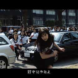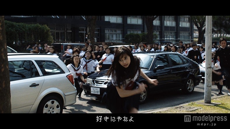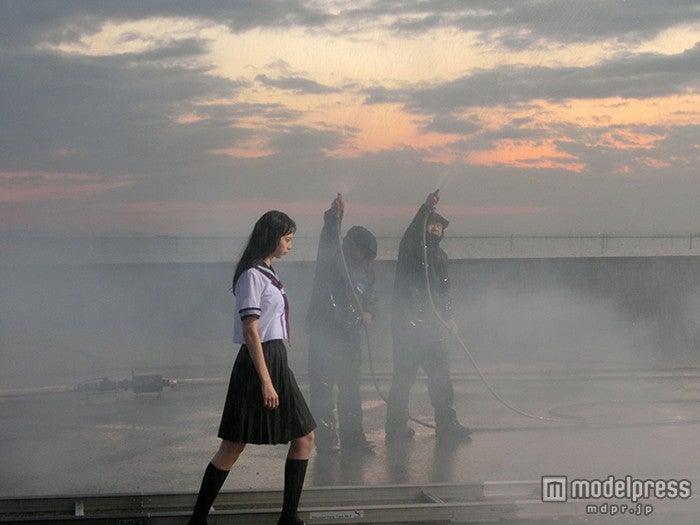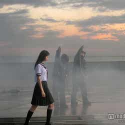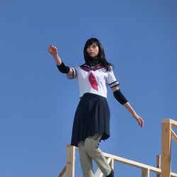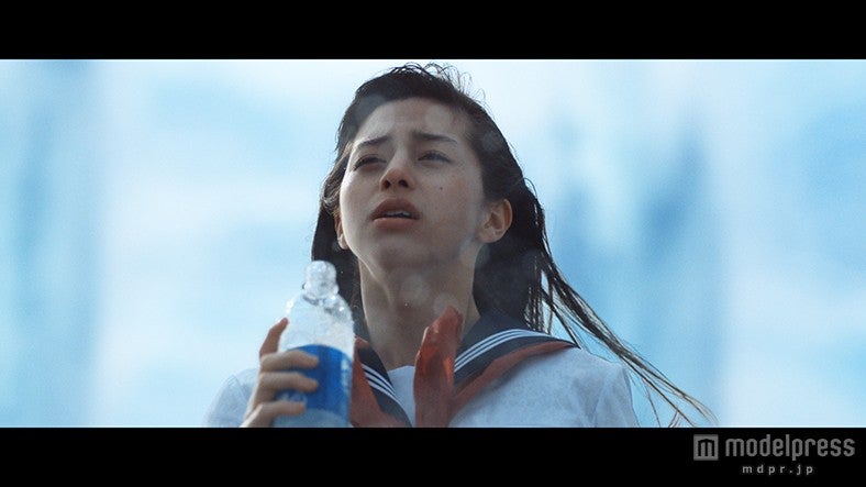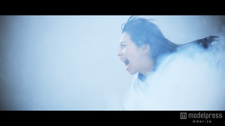 複数日かけて行われた撮影は、学校、街の中、高層ビルの屋上、港など、様々な場所で敢行。中条が「想像以上にたくさん走ったので筋力も鍛えられました!」と話した通り、どのロケでも走る、走るの連続。港の撮影では、極寒の風が吹く中、演出用の水を浴びながら空へ飛び出すシーンを何度もこなし、過酷な撮影に立ち向かっていく中条の姿が印象的だったという。さらに街中を疾走するシーンでは、実際の道路を封鎖。中条は「約500人のエキストラのみなさんと呼吸を合わせて全力疾走したときは、走る距離も長くてすごく大変でしたが、終わったときは達成感があり、とても楽しかったです」と興奮気味に振り返った。