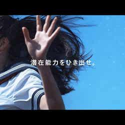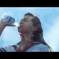 「ポカリスエット」の新CMに起用された中条。4月18日に全国でオンエアを開始する「Jump」篇は、「WE WILL ROCK YOU」という力強い音楽とメッセージで、中条をはじめとする高校生たちの眠っていた力が目を覚まし、想像以上の自分へと成長していくストーリー。