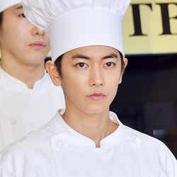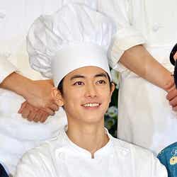 同作は大正・昭和時代の宮内省大膳頭を務めた秋山徳蔵氏の人生を描いた、直木賞作家・杉森久英氏の同名小説を原作に、何をやっても長続きしなかった片田舎のやっかい者・秋山篤蔵(佐藤)が、西洋料理のシェフになるという途方もない夢を持ち、天皇の料理番を勤め上げるまでに成長していく姿を描く。佐藤は役作りのために勉強したという福井弁、料理、フランス語が大変だったという。「それぞれ初めての経験でしたので、難しかったです。福井弁と料理はクランクイン前にできたのですが、フランス語は1番忙しい時期とかぶり練習の時間がとれなかったんですよ」と特にフランス語に苦労したといい「フランス語のセリフも膨大だったのですが、一夜漬け感覚で2日間で覚えました。その期間が大変でした」と振り返った。