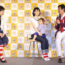 3人は20日、ドナルド・マクドナルド・ハウスせたがやにて開催された、病気と闘う子ども達とその家族のための滞在施設 「ドナルド・マクドナルド・ハウス」が世界で40周年を迎えたことを記念した「スマイルソックス キャンペーン」 発表会に出席。壇上にあがった石田と東尾は、同キャンペーンを記念し、理汰郎君とともに300円を募金。今回配布される支援の証「スマイルソックス」を受け取り、素足がトレードマークの石田がその場で靴下を履くという、珍しい姿を見せた。