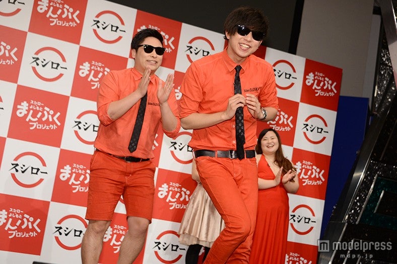 24日、都内にて行われた「スシロー×よしもと まんぷくプロジェクト」記者発表会に出席。「ラッスンゴレライ」のリズムネタで引っ張りだこの2人は、「今日も朝大阪から来て1時間半しか寝ていません」という多忙ぶり。この日も記者会見後に大阪にとんぼ返りするといい、「ちょっと収録したらまた(東京に)戻ってきます」と過密スケジュールに苦笑。