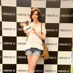 この日は約150人で店内が埋め尽くされるほどの賑わいをみせる中、レースのオフショルダーチュニックにコーラルピンクの水着をインし、デニムショートパンツを合わせヘルシーな美脚姿を披露。「夏らしいフェスファッションがテーマです。今季トレンドの70年代風フリンジバッグやバングルなどの小物使いもポイント」と笑顔を見せていた。(modelpress編集部)