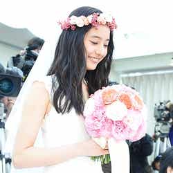 椿は同日、都内で行われたゼクシィ新CM&新CMソング発表会に出席。サーモンピンクのウエディングドレス風衣装で登場し、左手薬指につけた指輪を光らせた。