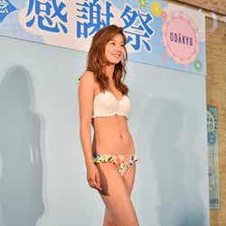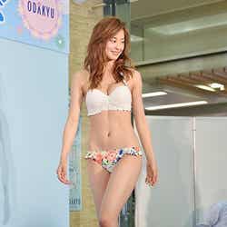 30日、都内で行われた水着とゆかたのファッションショーに出演。2015年三愛水着イメージガールを務めている朝比奈はトップスが白、ボトムが花柄、上下別柄のバンドゥビキニに身を包んで登場したほか、花柄ビキニ×ワンピースのコーディネートなどを紹介し「ショーで歩くのはいつも楽しい。恥ずかしさはないです」と笑みを浮かべた。