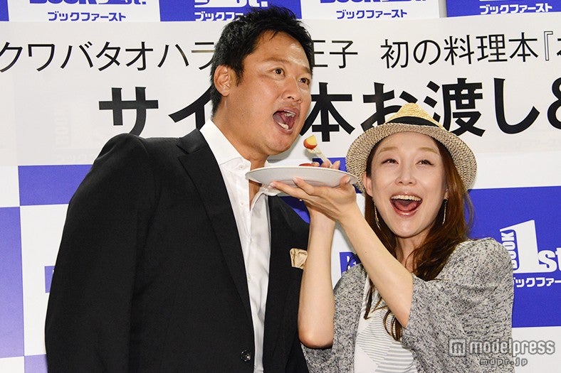 31日、都内で行われた小原初の料理本『おはらごはん 食べて仲良くなる73のレシピ』(桜雲社)発売イベントに出席。「お酒を飲んで管を巻くとかそういうイメージを持っている方もいると思うけど、本当は掃除もできて料理もできて素晴らしい女性です。こういう機会をもっとつくっていただいたほうが彼女の良さがアピールできる」と胸を張るマックに、普段ほとんど褒められることがないという小原は「感動しちゃって泣きそう。どうしよ~」と話しながら涙。「嬉し泣き!もう~幸せ」と化粧が落ちるほどに嬉し涙を流していた。