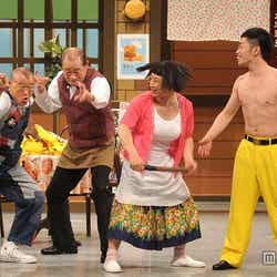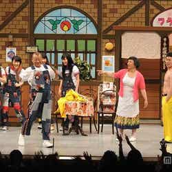 さらにそこに鶴瓶も登場すると、劇場はさらなる驚きと大歓声に包まれ、客席からは「すげえ!」の声が上がるなど、大興奮状態。すち子の「乳首ドリル」に合わせて、鶴瓶やももクロ、新喜劇メンバーが一緒になって「龍踊り」も披露した。