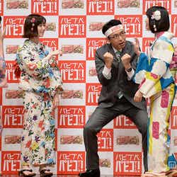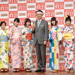 横山と島崎は25日、都内で行われたアイスの新CM発表イベントに、高橋朱里、小嶋真子、田野優花、向井地美音、山田菜々美、フリーアナウンサーの福澤朗氏とともに出席。それぞれが夏らしく、しっとり浴衣姿で登場した。