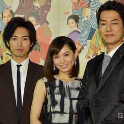 同作は「しゃばけ」シリーズで人気の原作者・畠中恵氏が、妖怪ファンタジーとは一線を画して挑戦する新シリーズ。江戸町名主の跡取り息子・麻之助(福士)が、幼なじみの色男・清十郎(桐山漣)、堅物・吉五郎(趙珉和)とともにさまざまな謎や揉め事の解決に立ち向かう人情ミステリードラマである。この日、ともに出席した南沢奈央から「現場でも空気を作ってくださって、モノマネで笑わせてくれる」、市川由衣から「いつもみんなを盛り上げてくれて、元気がないときにモノマネしてくれたりとか、なんでもできてすごい人。尊敬してます」と“座長ぶり”を称賛。必然的にモノマネを振られてしまった福士は、共演者のえなりかずきのモノマネを披露し笑わせた。