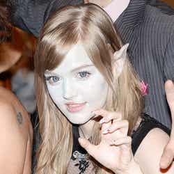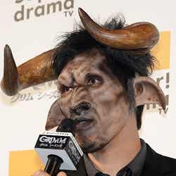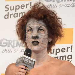 9日、都内で行われた海外ドラマのプレミア試写会に出席。この日は作品の内容に絡めて、モンスターをイメージした特殊メイクで登場。メイクのポイントは「ジャガーです」と声を弾ませながら紹介し、「肉食系です」と張り切った。
