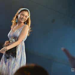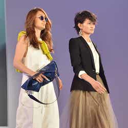 「AneCan」「Domani」の“史上初”W専属モデルをつとめる蛯原友里は、6月に第1子妊娠を発表して以来初となるランウェイウォークを披露。お腹の膨らみがほんのりとわかる真っ赤なドレスのクールなスタイルや、美脚が露わな夏スタイルを着こなし、ファンの大歓声を浴びた。押切もえ、山本美月らが着こなす夏ファッション
