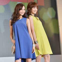 「Oggi」モデルの松島花は美脚がのぞくホワイトドレスで、クールで洗練された都会の女性を体現。高垣麗子は鮮やかな赤を基調とした大人可愛いスタイルを披露した。