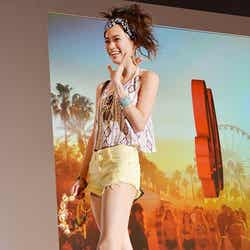 「AneCan」モデルの押切もえは、しっとり浴衣姿で登場し大人の色気で魅了。バカンスをテーマにしたファッションでは、ロングワンピをなびかせながら颯爽とランウェイを闊歩した。「CanCam」で活躍する山本美月はキャミソール×ショートパンツのボヘミアン風のフェススタイルや、ブラックでまとめたクールなスタイルなど美肌を全開にしたファッションで会場の熱視線を集めた。「Oggi」モデルの松島花は美脚がのぞくホワイトドレスで、クールで洗練された都会の女性を体現。高垣麗子は鮮やかな赤を基調とした大人可愛いスタイルを披露した。