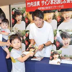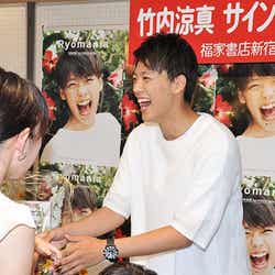 2日、東京・福家書店新宿サブナード店で1stフォトブック「Ryomania(リョウマニア)」(主婦の友社刊)の発売記念イベントを開催。同書は、MARCO、飯田かずな、寺田茉布、kisimari、mikaの女性人気フォトグラファーが、企画ごとに撮り下ろし、まさに“マニア”のごとく竹内のすべてを網羅した1冊に仕上がっているが、5人に撮影された点について「それぞれの色がありますし、自分で作っていくよりは、そのカメラマンさんの色に染まれたらいいなと思っていたので、カメラマンさんに言われたことを素直に聞きました」と明かした竹内に、“女性に染められた経験は?”と質問が飛ぶと「わりと好きになったらガーッと行くタイプなんですけど、女の人の言うことを聞きたいタイプではないんです。自分が染めたいわけではなく、気の強い女性が好きでバチバチしたいんです」と恋愛観を告白。また現在の恋愛事情を聞かれると「今は子どもたちのヒーローをやっているので恋愛は休んでいるんですけど、彼女は欲しいです」と心境を明かした。