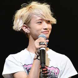 とまんは白のTシャツ×黒のパンツに、シャツを腰に巻いて笑顔全開。バトシンは「2日前が誕生日で、ファンの子にもらった服を着てみました」と明かし、会場の女子から興奮の歓声が上がった。