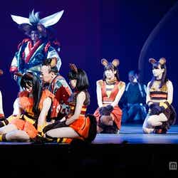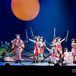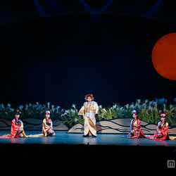 同公演は二部構成。第一部の全編書下ろしオリジナル演劇『博多少女歌舞伎 博多の阿国の狸御殿』では、拍子木で附けが打たれる中、見得を切るシーンやHKT48の楽曲も和風にアレンジされ、ストーリーが展開。殺陣やダンスシーン、ワイヤーを使って馬に跨り指原と宮脇咲良が3階まで11メートル上昇する演出も。第二部はHKT48ライブショー『踊る!たぬき祭り』を上演。31日まで全15公演。(modelpress編集部)