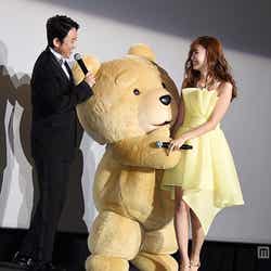 小嶋はデコルテラインと美脚があらわになったセクシーなドレスで登場。前作「テッド」に引き続き、今作でも日本語吹替えを担当した有吉から「胸元がえぐい!」と評されると、「今日に合わせて仕上げてきました」とノリノリで応えつつも「エグいって言い方しないでください(笑)」と言い返していた。小嶋陽菜がご褒美でハグ